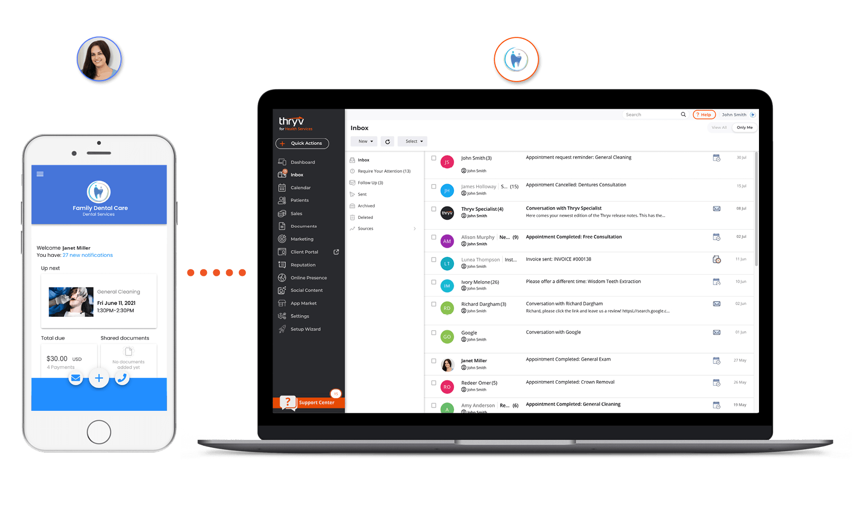 Never miss an important message, appointment or payment with all your patients's information front and center, managed from one secure inbox.
